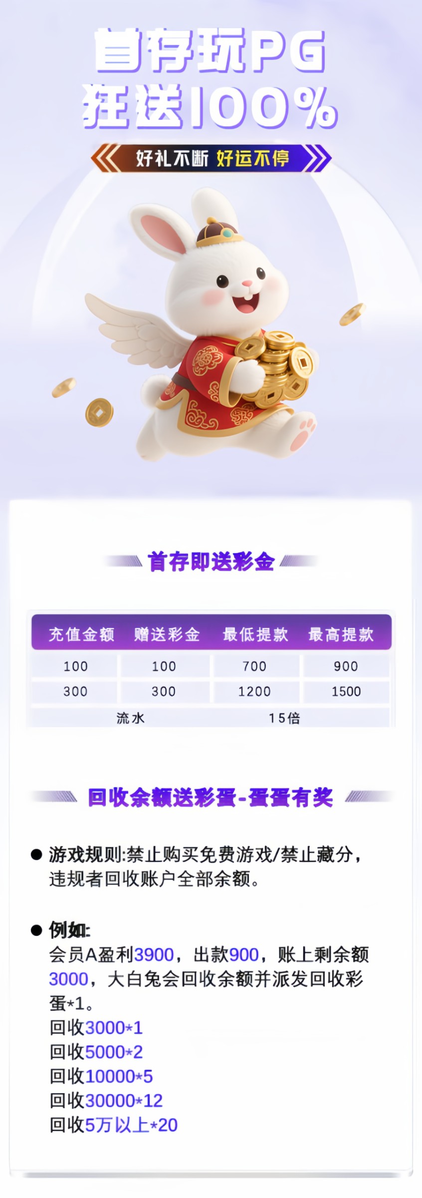 首存活动 100+100 活动规则自己看清楚(能不能免费/玩什么游戏),彩金充值的时候直接选择秒到,如果没有联系在线客服咨询(游戏如果违规,连本金都会被罚没