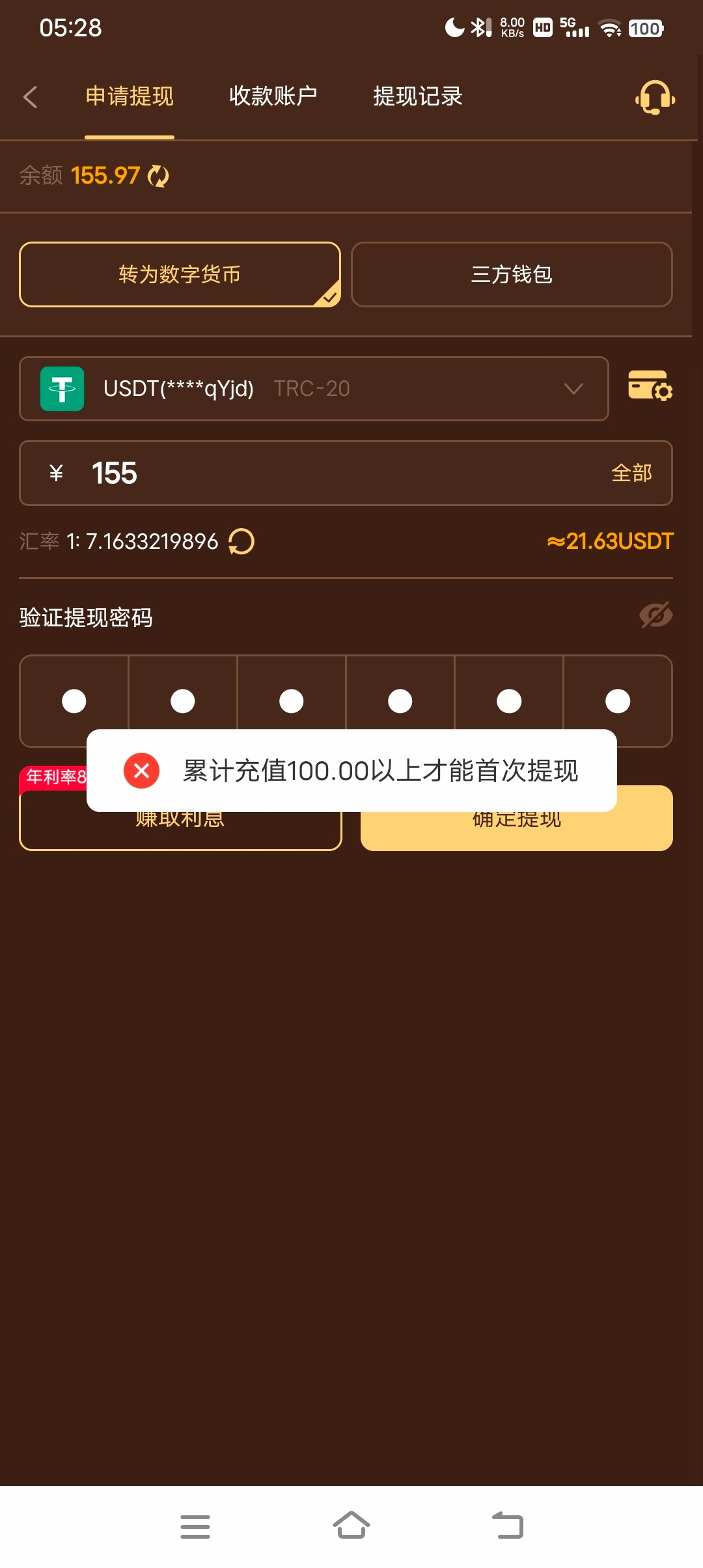 aA155068 打到450 充值100 直接扣了我250 这逼台