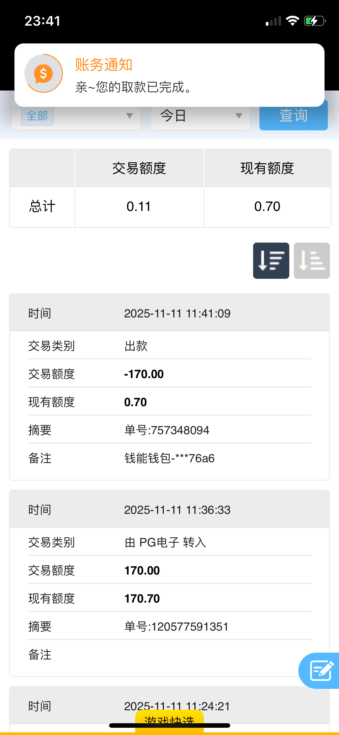 出款情况:自测